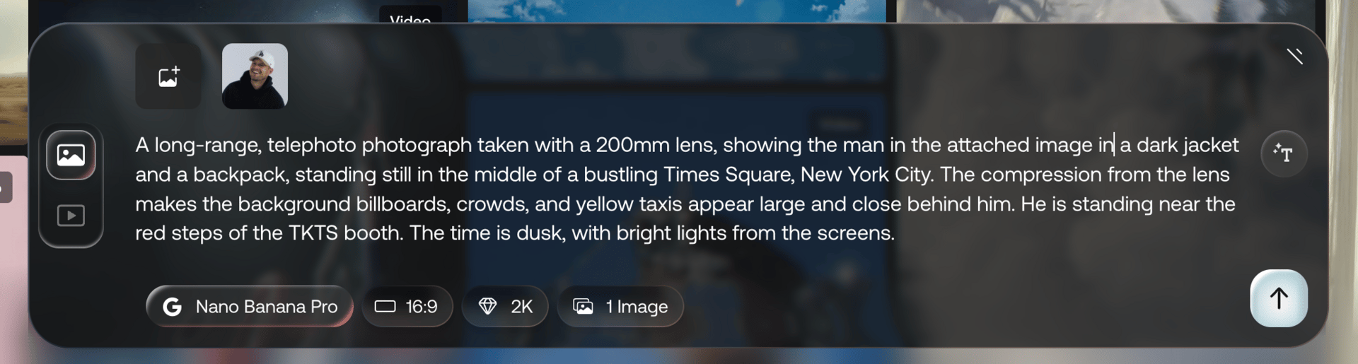 Then, select Artlist’s Original Image model and enter your prompt, or use Nano Banana Pro to add a reference image of yourself.