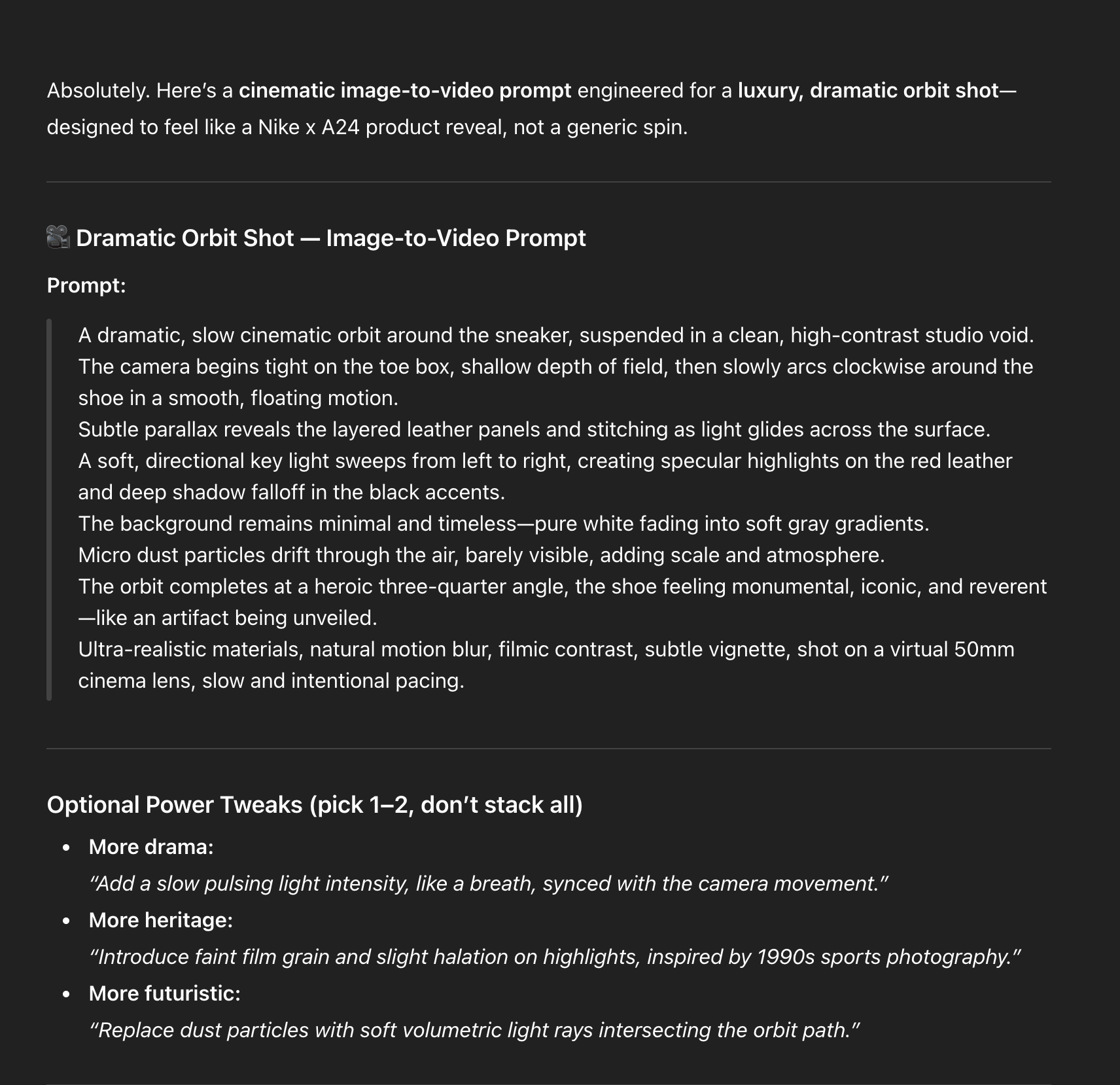 The orbit completes at a heroic three-quarter angle, the shoe feeling monumental, iconic, and reverent—like an artifact being unveiled.